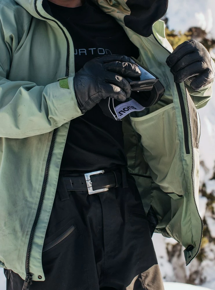 - Ergonomic, water-repellent zip-out stretch powder skirt has Jacket-to-Pant interface to connect complementing Burton pants