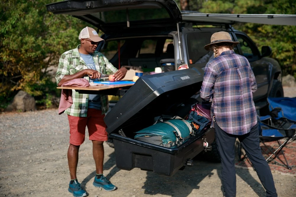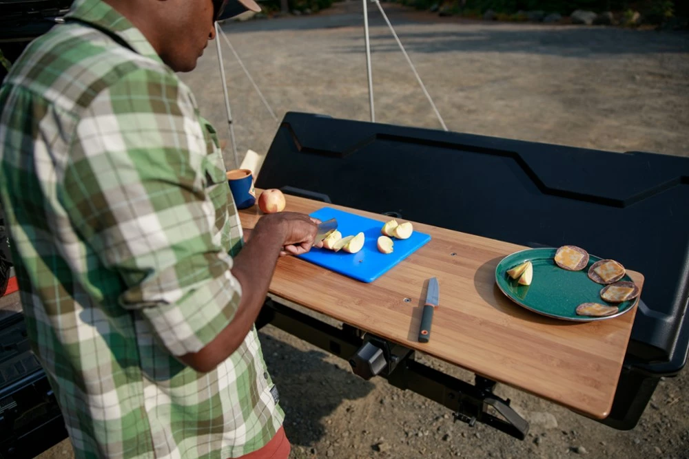 Tinker with your gear or prep a meal for your crew on the Yakima EXO BackDeck. It turns your EXO system from a gear hauler to a classy working surface or bar top in seconds.