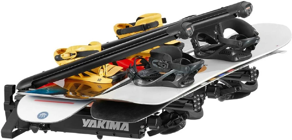 Carrying skis and snowboards on the back of your vehicle when mounted to an EXO SwingBase or EXO TopShelf (not included), the Yakima EXO SnowBank lets you and your crew load and unload with ease.