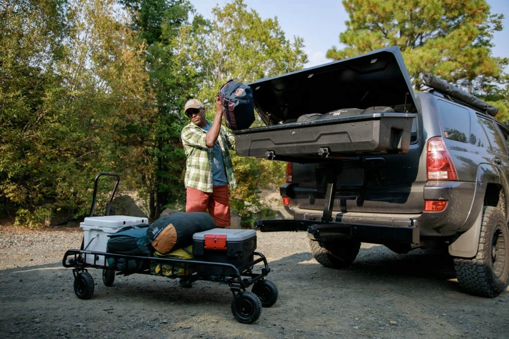 - Also works as an excellent basecamp on the back of your vehicle with the support of included jack stand