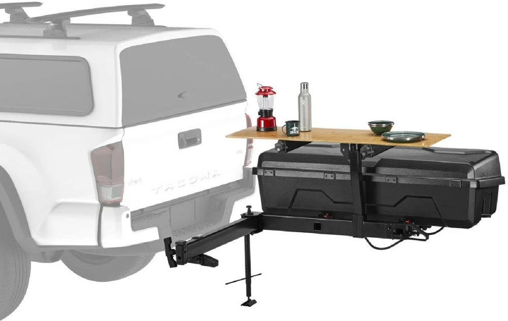 - EXO TopShelf rotates 180° relative to EXO SwingBase for easy access to your vehicle’s cargohold and the gear stowed on the lower level