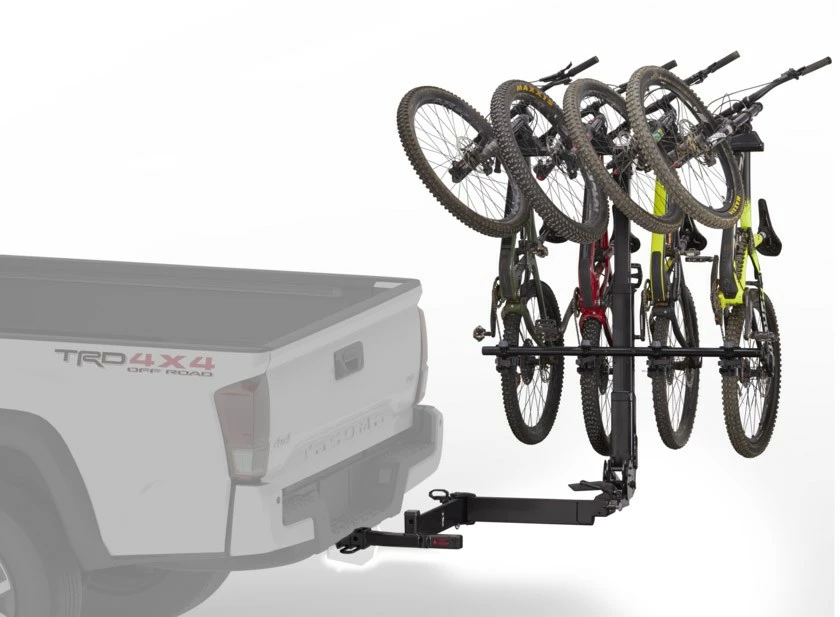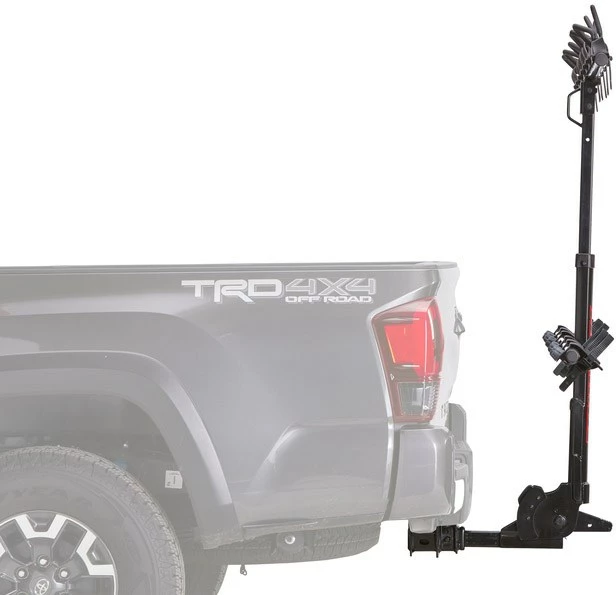 - Foot-operated tilt mechanism with 2 adjustable mast angles keeps your bikes from bumping into your car, truck or SUV, and makes accessing the tailgate a breeze