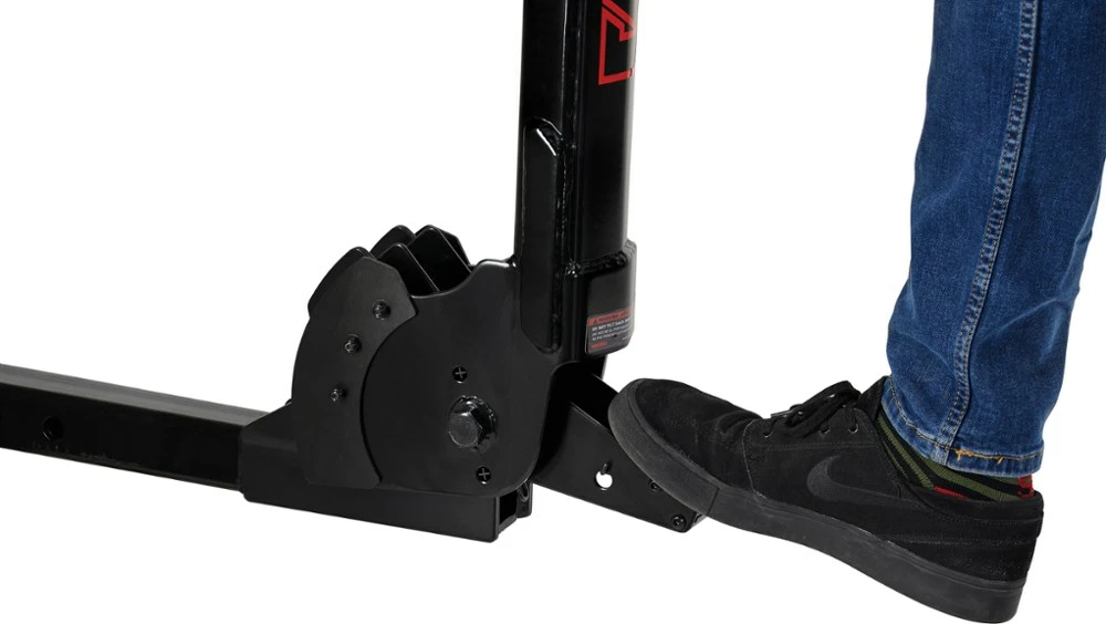 - Foot-operated tilt mechanism makes it easy to access the rear of the vehicle after you’ve unloaded your bikes
