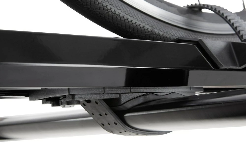 - Requires no wheel removal and makes no contact with the bike frame—a great option for carbon fiber bikes and custom paint jobs
