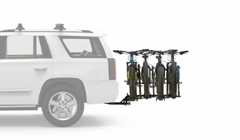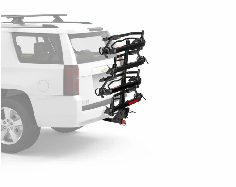 - The whole unit can be tilted down and out of the way with bikes loaded for easy rear-of-vehicle access