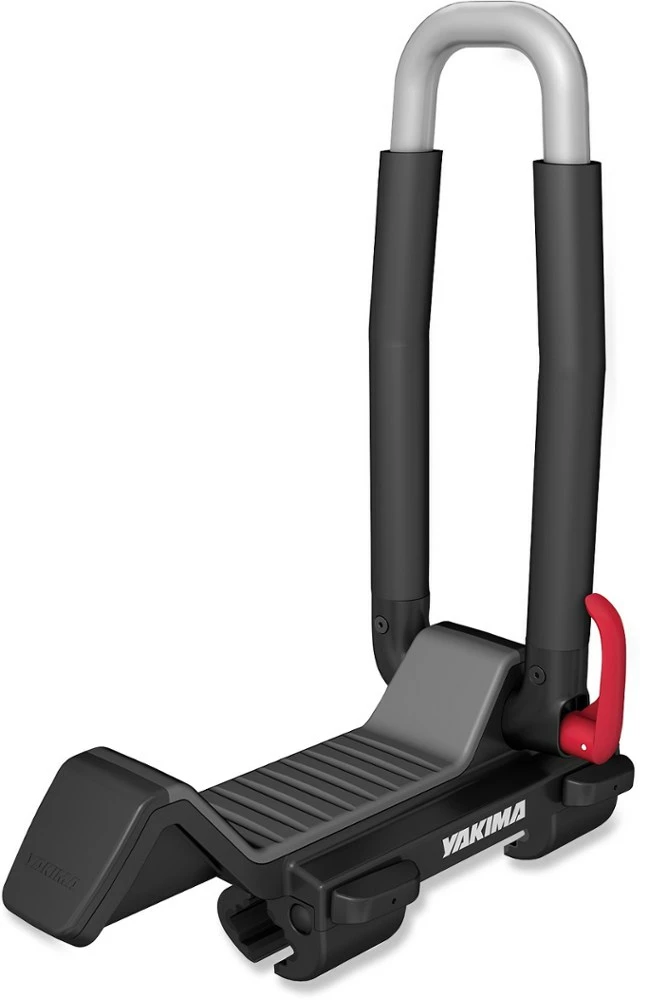 With multiple settings, the Yakima JayLow Kayak Carrier allows you to carry 1 boat in the J-cradle position or 2 boats in the vertical position, and it folds down flat when not in use.