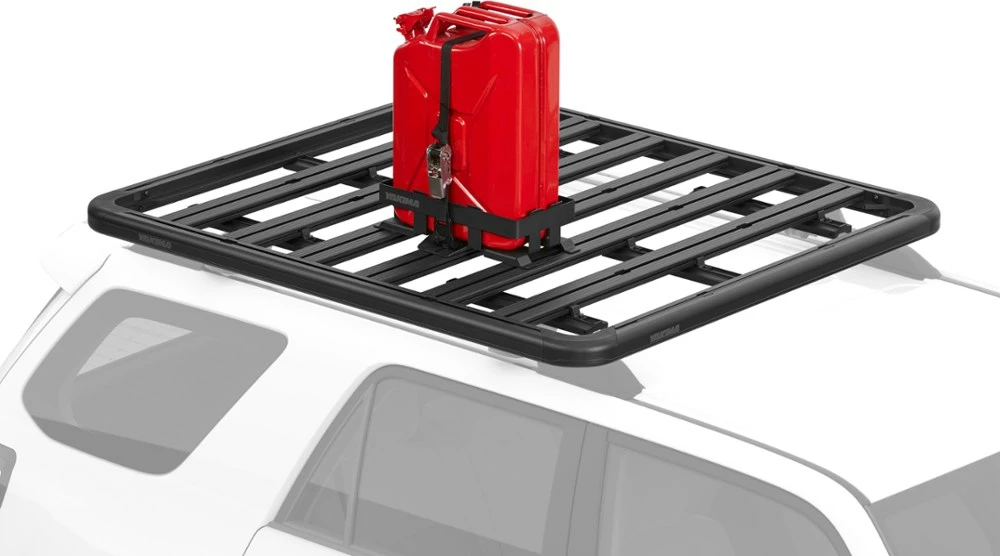 Go even further by carrying extra fuel and water on the Yakima LockNLoad Jerry Can holder. The low-profile cage height is easy to load, and heavy-duty ratchet straps keep it secure and rattle-free.