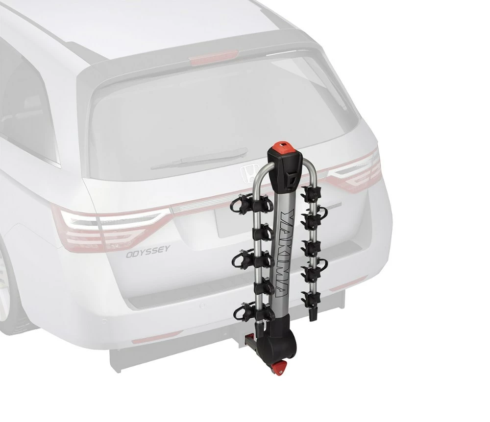The Yakima RidgeBack 5-Bike Hitch Rack carries 5 bicycles, comes fully assembled and tilts down for easy access to the rear of your vehicle.