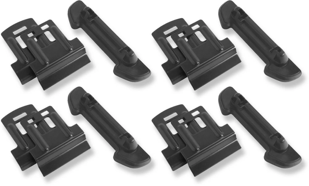 This set of 4 Yakima RidgeClips are specifically designed for Yakima RidgeLine towers (sold separately) to precisely fit a Yakima base rack system to vehicles equipped with factory flush rails.