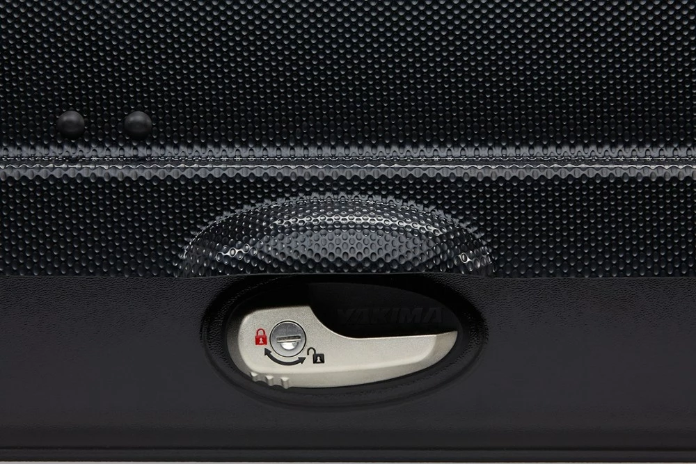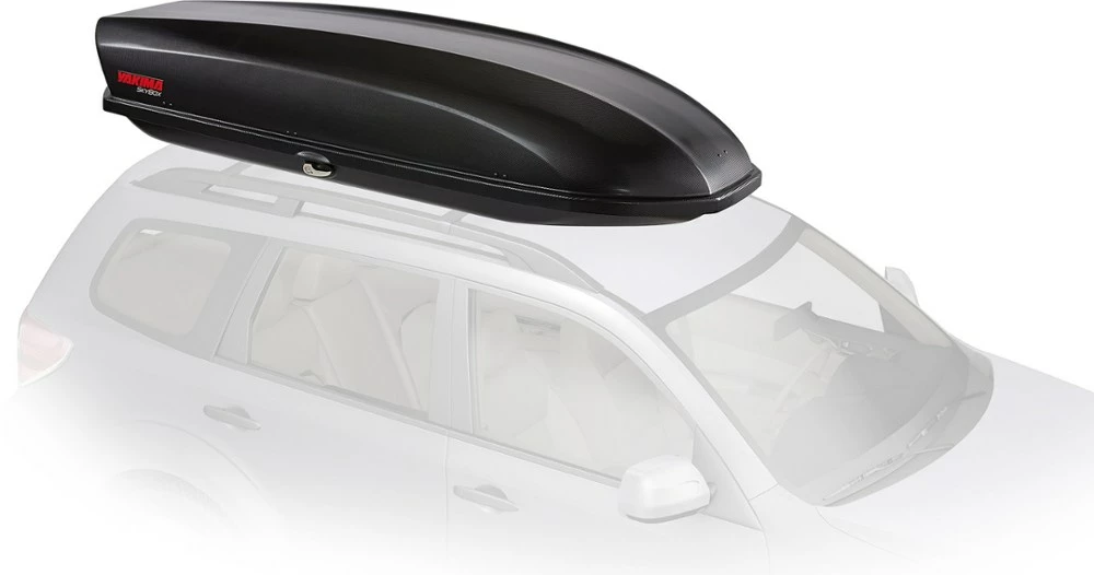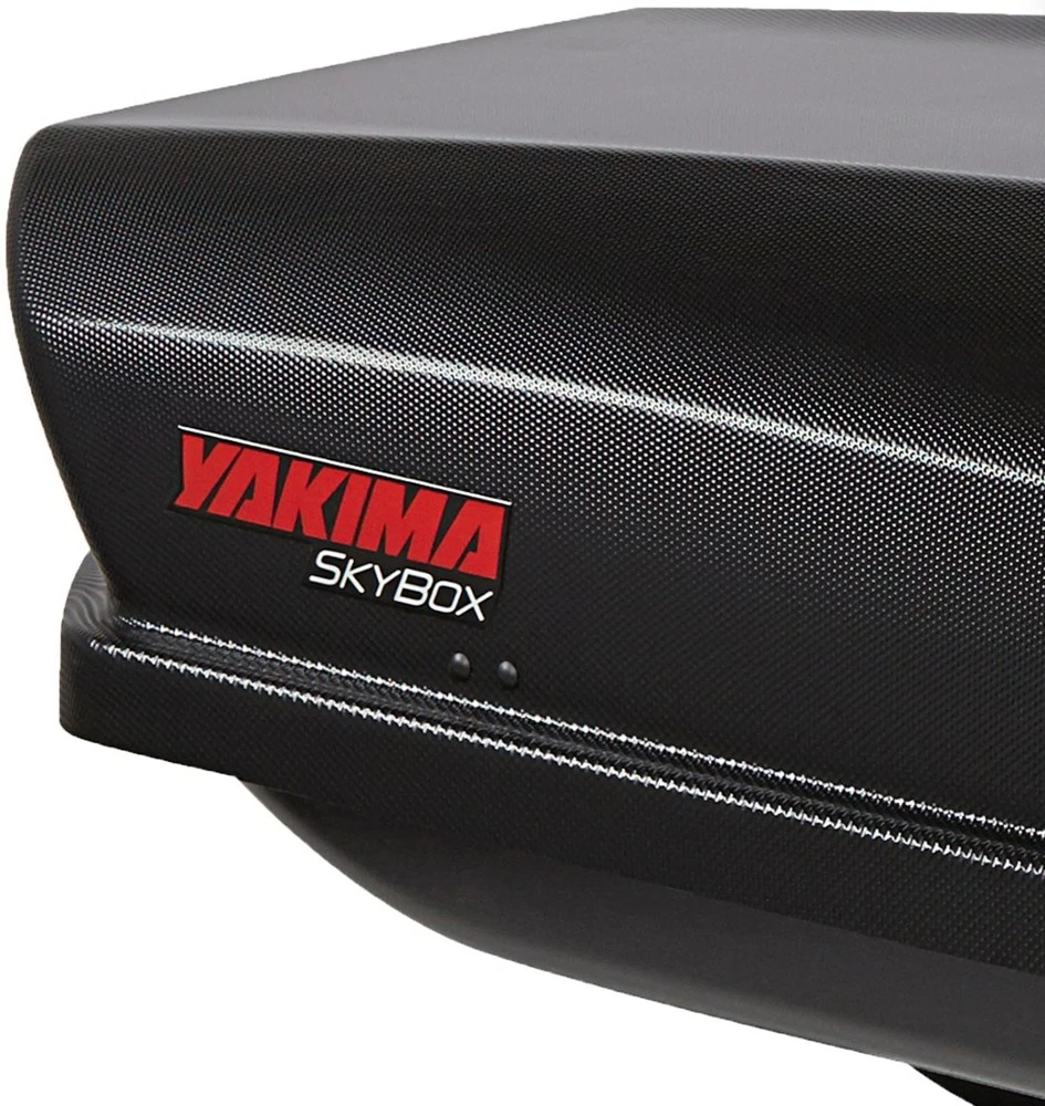 Ideal for hauling gear for up to 5 campers, the Yakima SkyBox 21 Carbonite Cargo Roof Box features a dimple-textured lid that reduces drag for less noise and more stability. And it looks great!